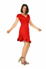 Schwingendes Tanzkleid Sabina mit langem Arm in Rot, von Vorne