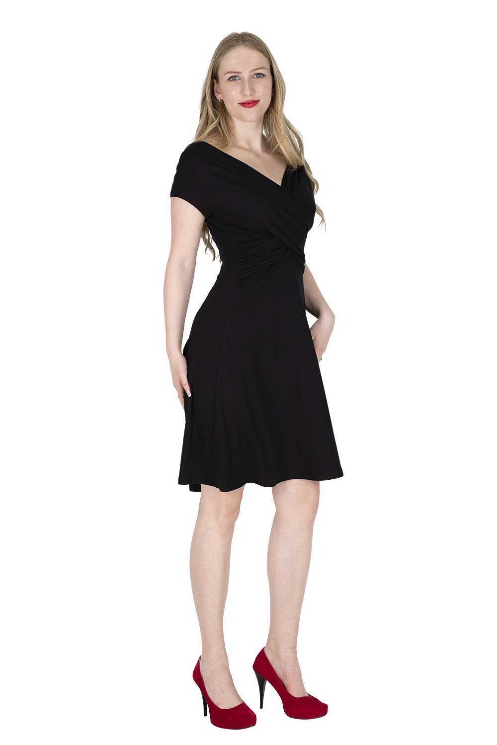 Unser Kleid FELICA ist elegant und alltagstauglich gleichermaßen. Der Wickeleffekt im Vorderteil zaubert eine tolle Taille.