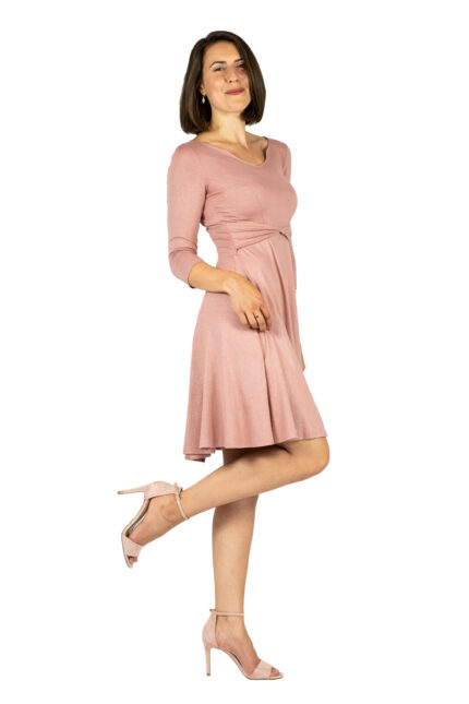 Unser schmales Basic-Kleid. Der Schnitt zeigt viel Liebe zum Detail. Die Raffung im Vorderteil kaschiert weibliche Rundungen perfekt. Die formgebenden Längsnähte strecken die Figur. Im Rücken gibt es in der Taille eine kleine Raffung. Die Passenabtrennung im oberen Bereich ist nicht nur dekorativ sondern auch perfekt platziert. Sie kaschiert die darunterlegende BH-Linie perfekt!